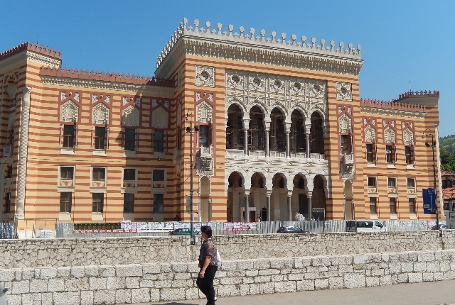 Built in 1896 in Austro-Hungarian period, the city hall stands as an impressive object displaying a combination of pseudo Moorish and historicism styles. The building was damaged in the 1990s blockade but has been restored and is open to visitors from 2014. The colorful interiors, stained glass ceiling, small exhibit of photos telling the history of the building is interesting.